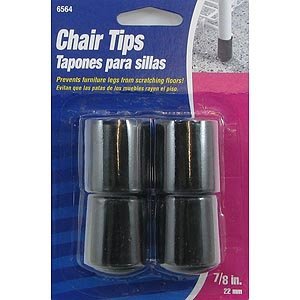 - Great for: - Tables - Chairs - Foot Stools - Bar Stools - Prevents furniture legs from scratching floors. - Contains: 4 chair tips. - Dimensions: 7/8 inches long. - Color: Black. - Easy to follow instructions on the back.